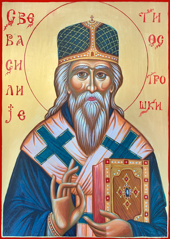 "St Vasilije of Ostrog", egg tempera on board, by Radmila Vasiljevic, 2015