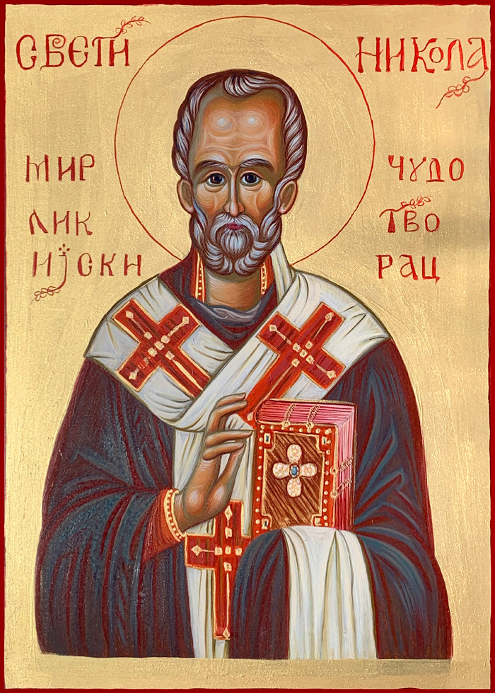 "St. Nicholas", egg tempera on board, by Radmila Vasiljevic, 2016