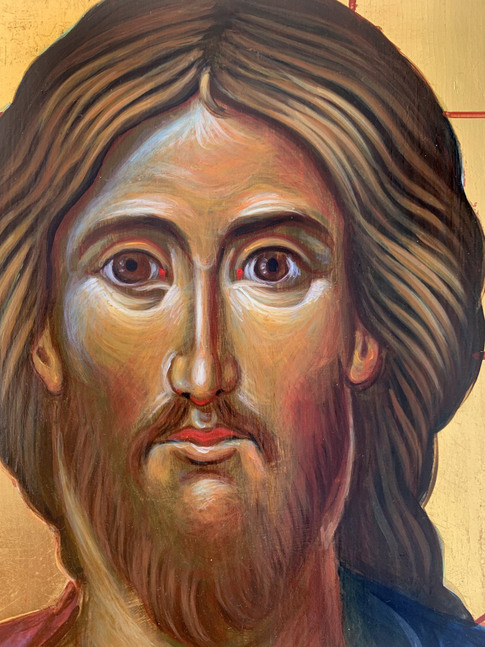 Jesus Christ, detail, egg tempera on wood, by Bishop Maxim, 2007