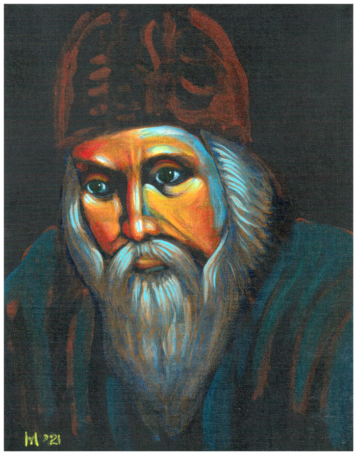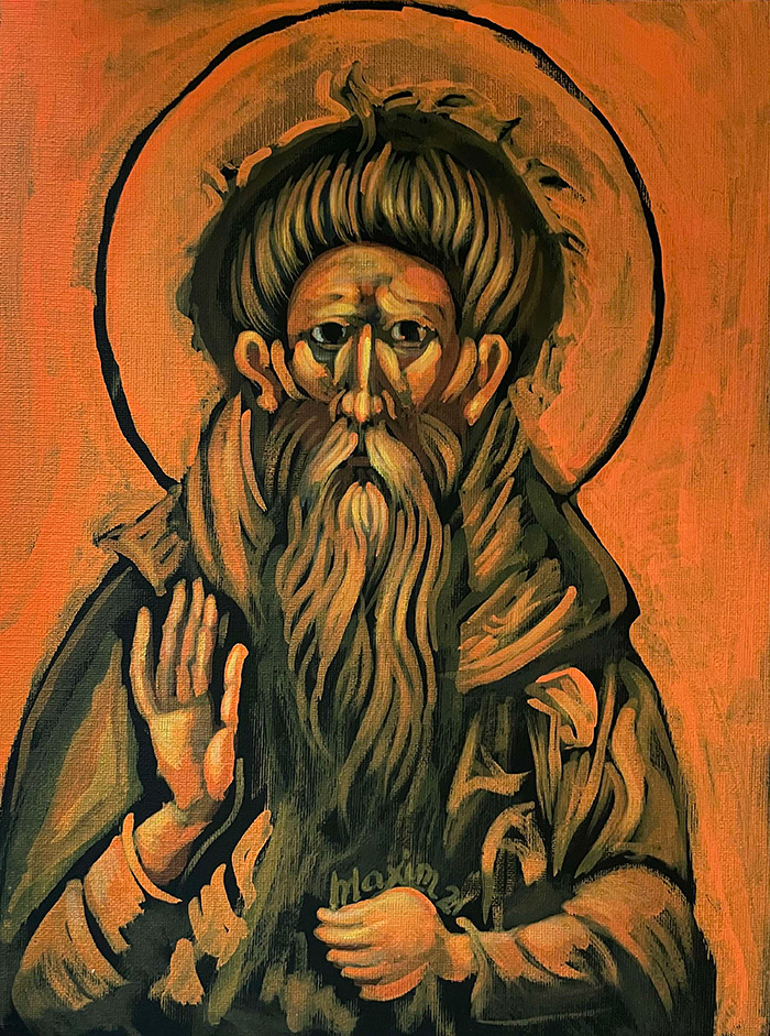 "Mika Golubović—Portrait", acrylic on gesso board, Bishop Maxim, 2025