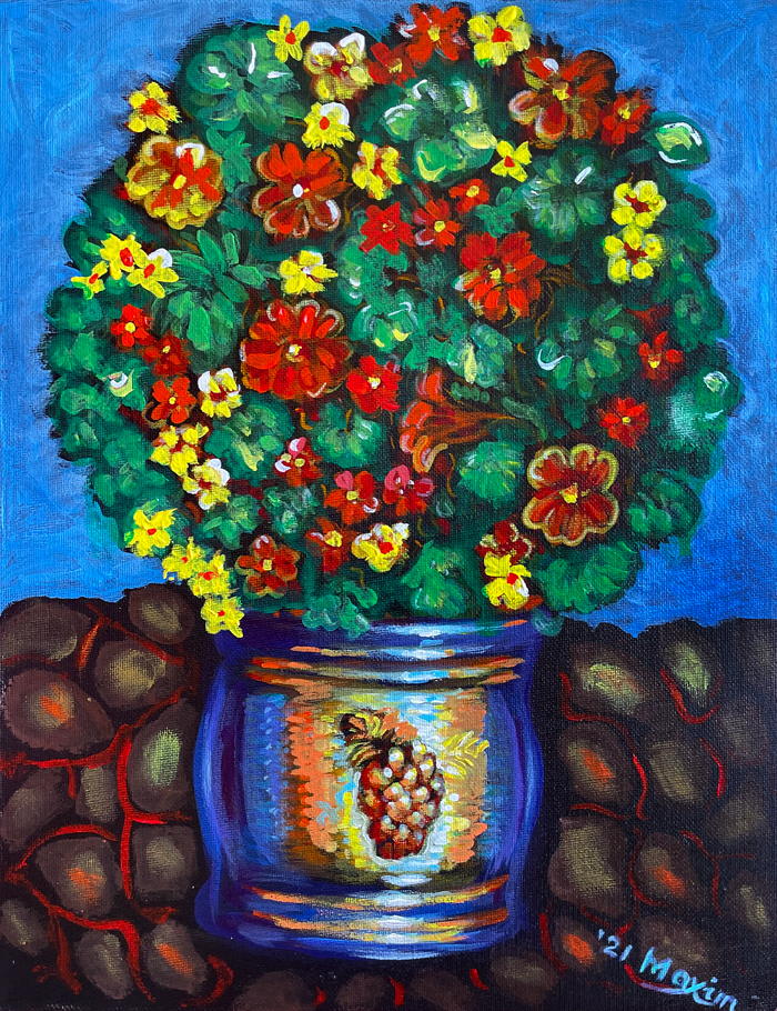 "Thanksgiving Abundance", acrylic on gesso board, Bishop Maxim, 2025