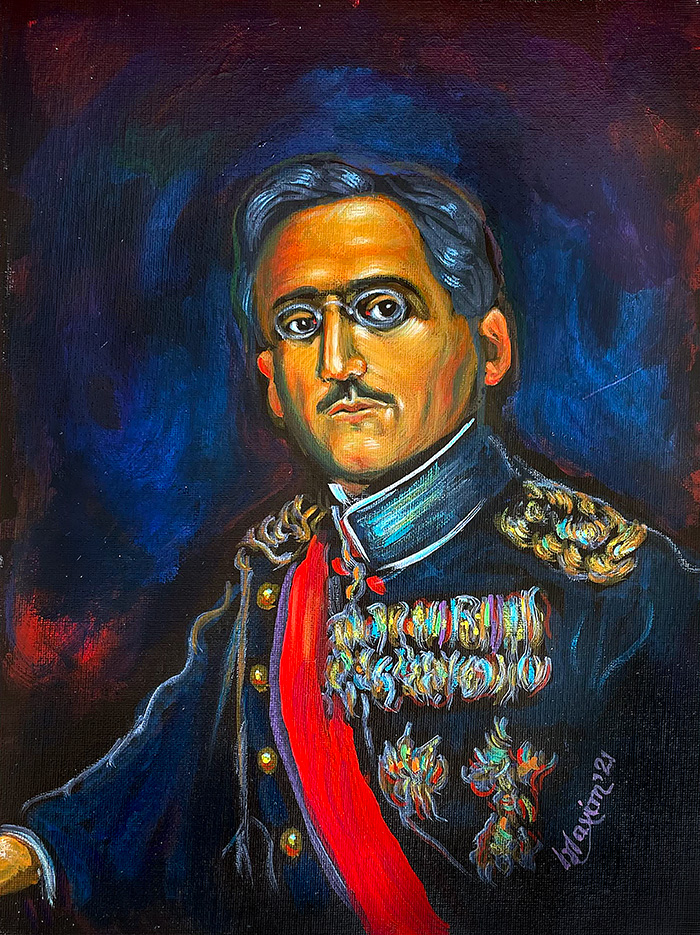 This portrait honors Mika Golubović, a beloved Bay Area philanthropist of Serbian heritage and longtime president of the First Serbian Benevolent Society—the oldest Serbian organization in the United States. His decades of service and generosity toward the community are reflected in the painting’s warm, dignified presence.