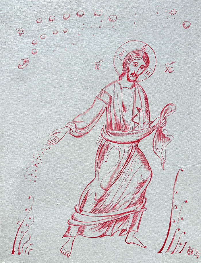 “Jesus Christ - Alpha and Omega”, detail, acrylic on canvas, by bp Maxim, 2020