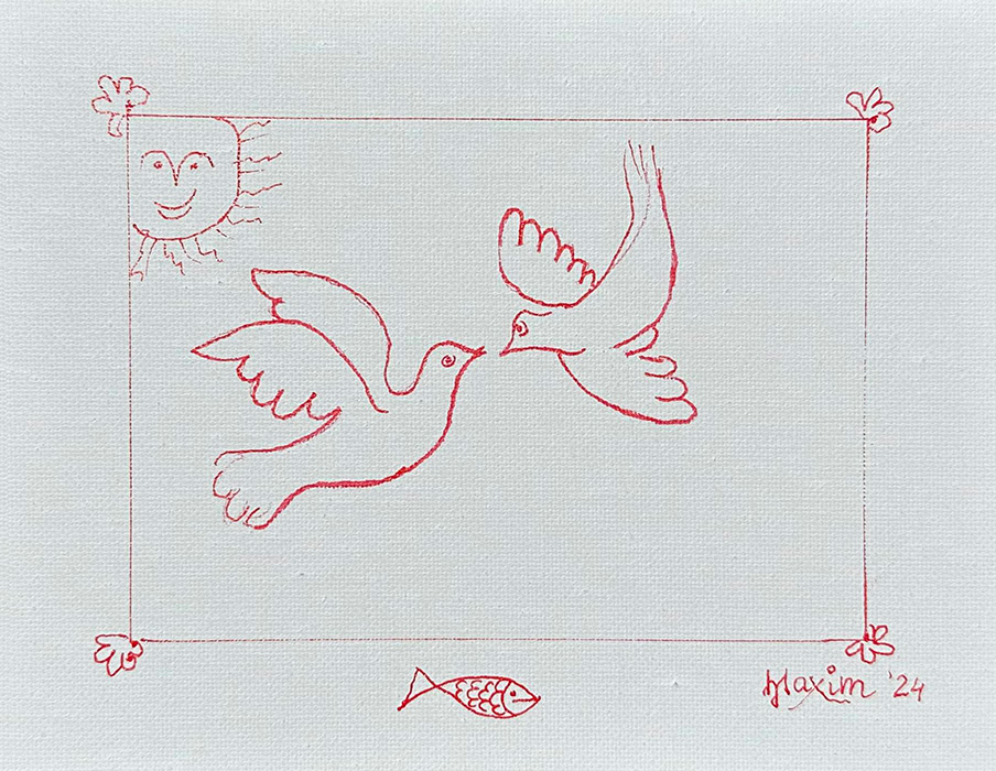 "Three Wings over the Northern Coast", acrylic on canvas board, Bishop Maxim, 2025