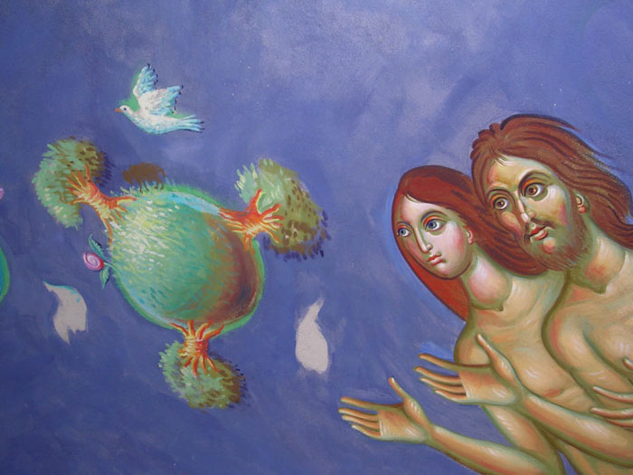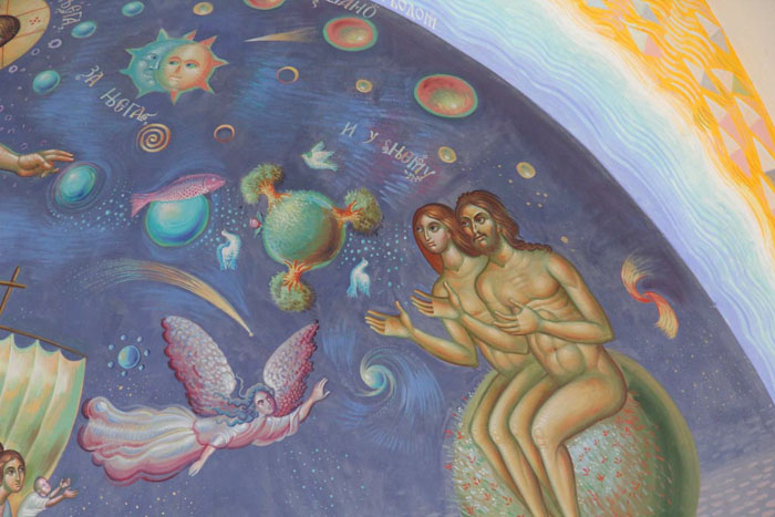 Creation of Adam and Eve, detail from Creation of the World, St Maximus Church in Kostolac, Serbia; Wall-Painting by Stamatis Skliris, 2006-2010.