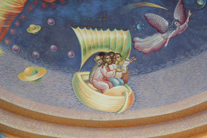 The planet (asteroid) of the Little Prince, detail from Creation of the World, St Maximus Church in Kostolac, Serbia; Wall-Painting by Stamatis Skliris, 2006-2010.