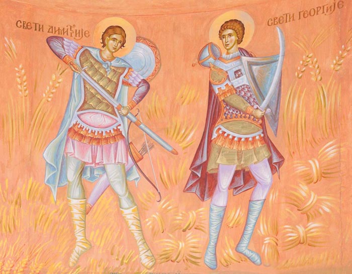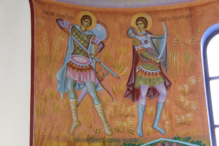 St Demetrios and St George, south apse, St Maximus Church in Kostolac, Serbia; Wall-Painting by Stamatis Skliris, 2006-2010.