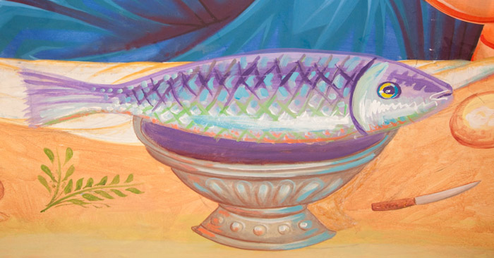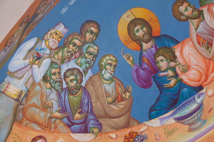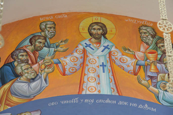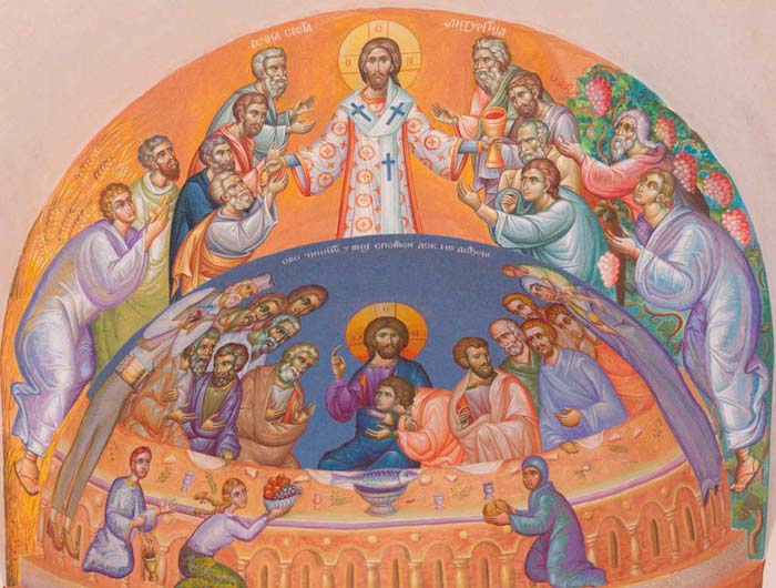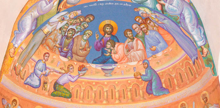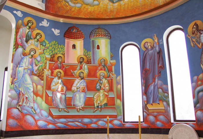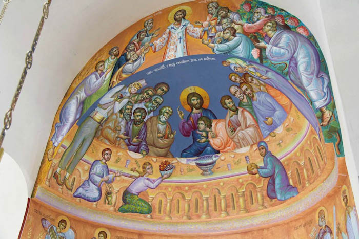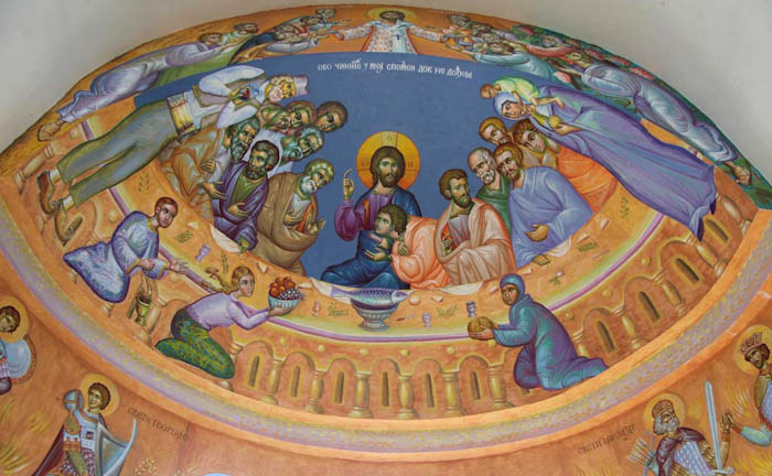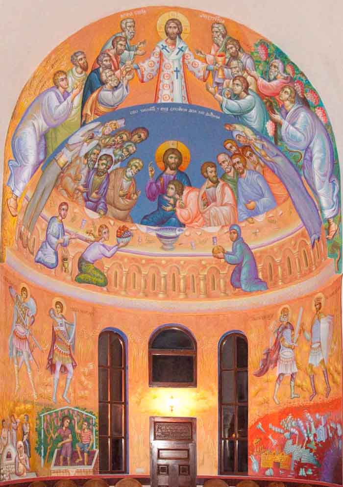 The Eucharistic way of life, detail, south apse, St Maximus Church in Kostolac, Serbia; Wall-Painting by Stamatis Skliris, 2006-2010.