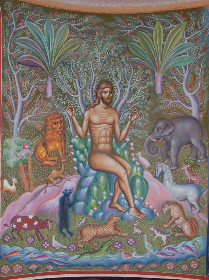 Adam, detail from Creation of the World, St Maximus Church in Kostolac, Serbia; Wall-Painting by Stamatis Skliris, 2006-2010.