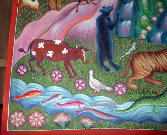Adam and Eve, detail from Creation of the World, St Maximus Church in Kostolac, Serbia; Wall-Painting by Stamatis Skliris, 2006-2010.