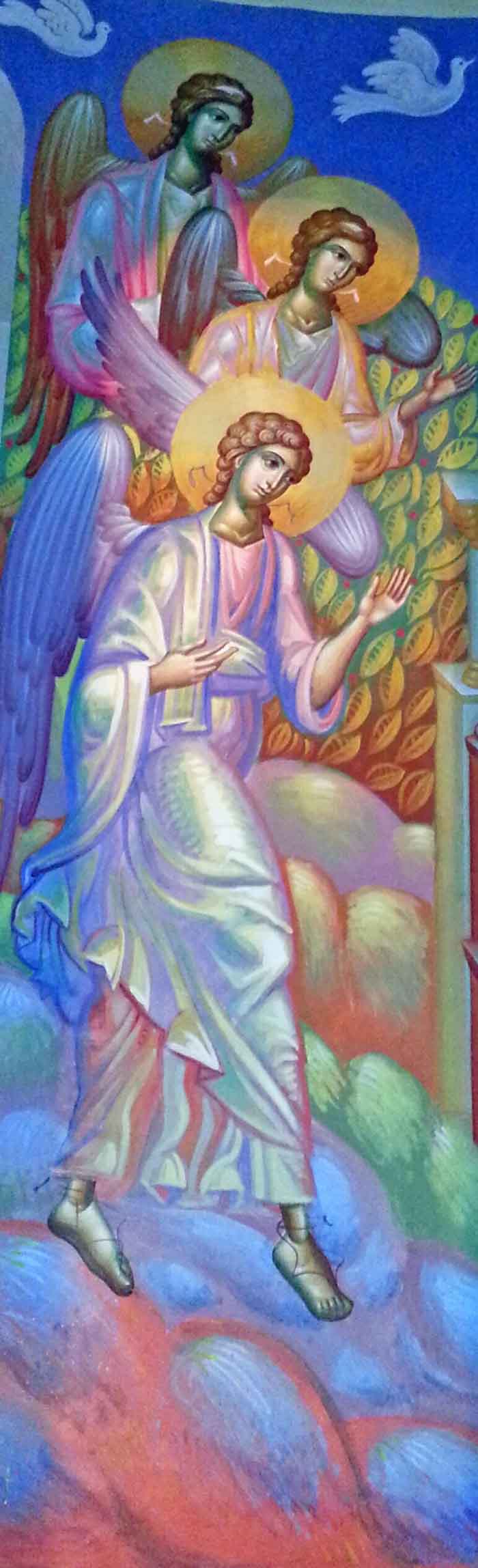 Angels of the Resurrection, wall painting, Church of St. Maximus, Kostolac, Stamatis Skliris, 2022