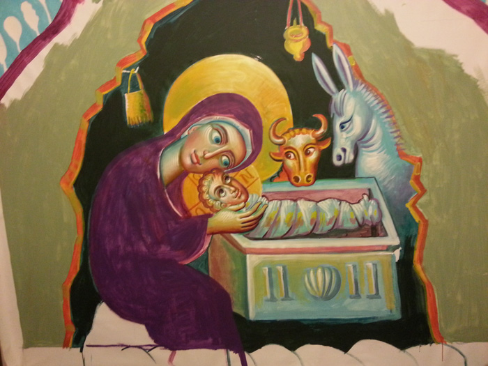 Celebration of the Resurrection in Kostolac, wall painting, Church of St. Maximus, Kostolac, Stamatis Skliris, 2022