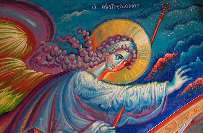 St John the Theologian, detail, St Nektarios Church in Ano Voula, June 11, 2014.