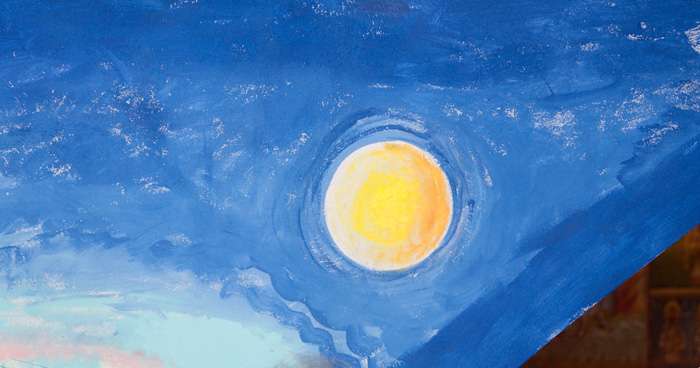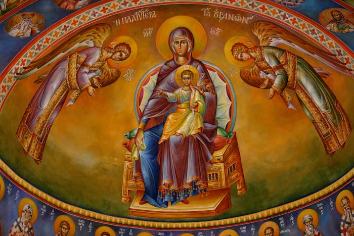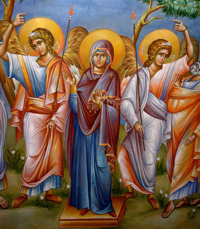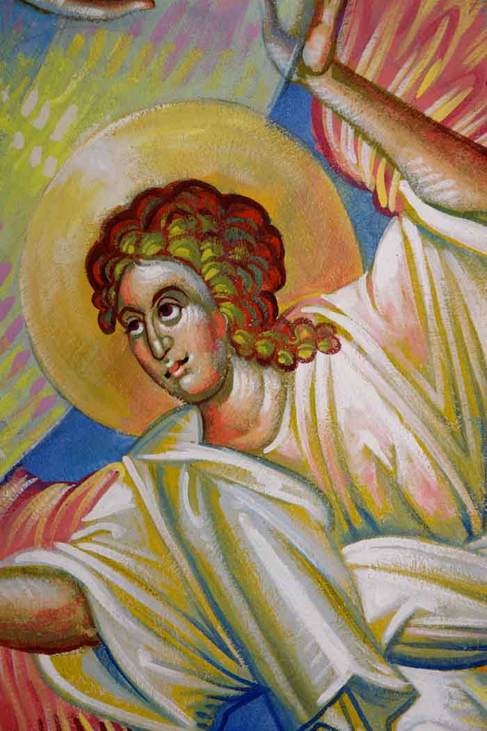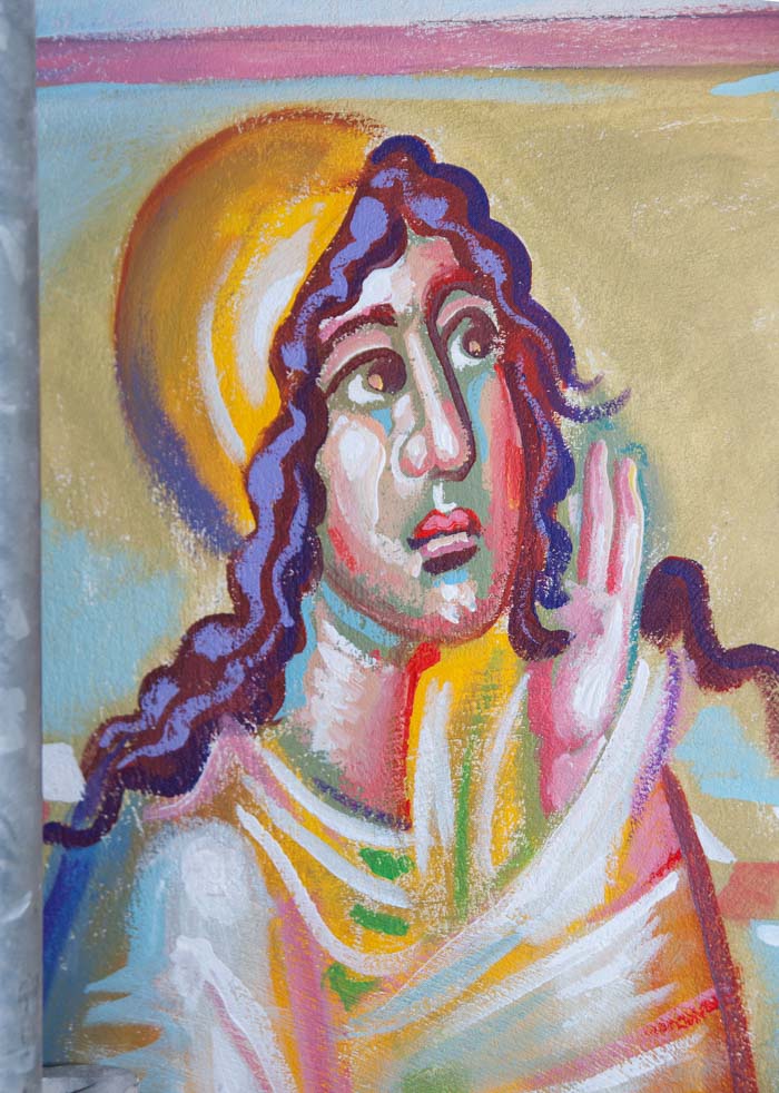 The Annunciation, detail, St Nektarios Church in Voula, Athens, wall-paintings by Stamatis Skliris, 2012.