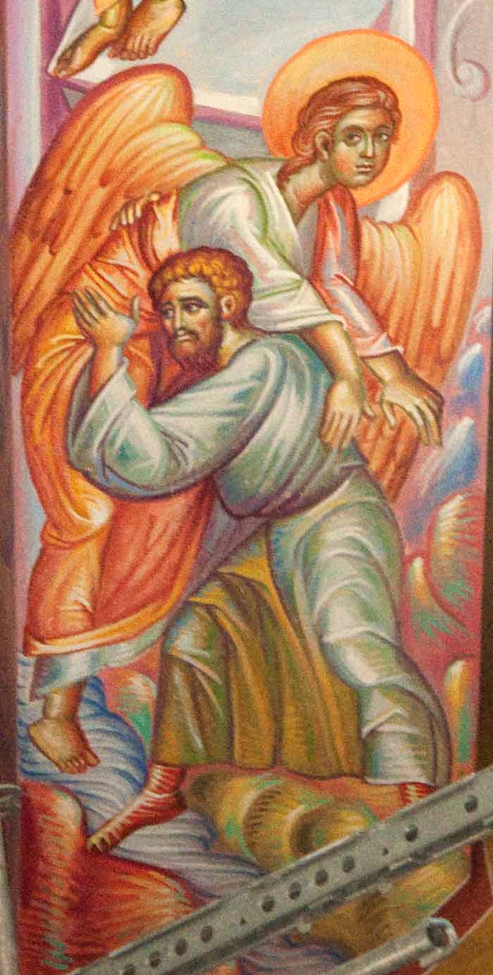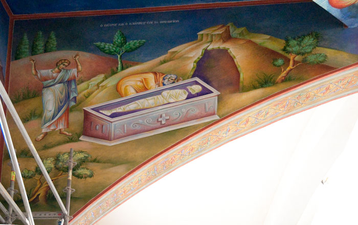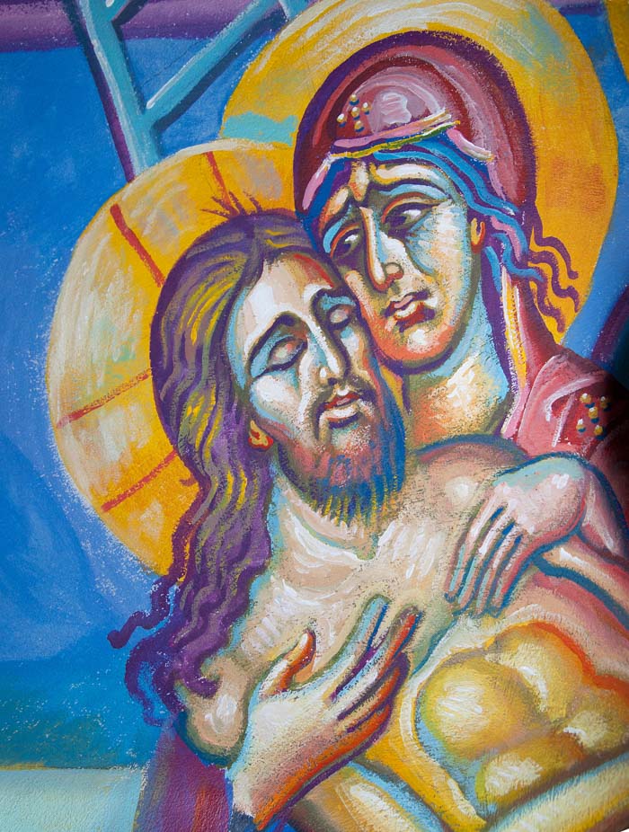 The Deposition from the Cross (Αποκαθήλωση), detail, Wall Painting, St Nektarios Church, Voula 2016