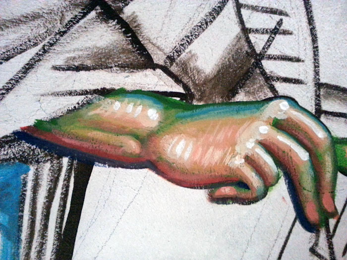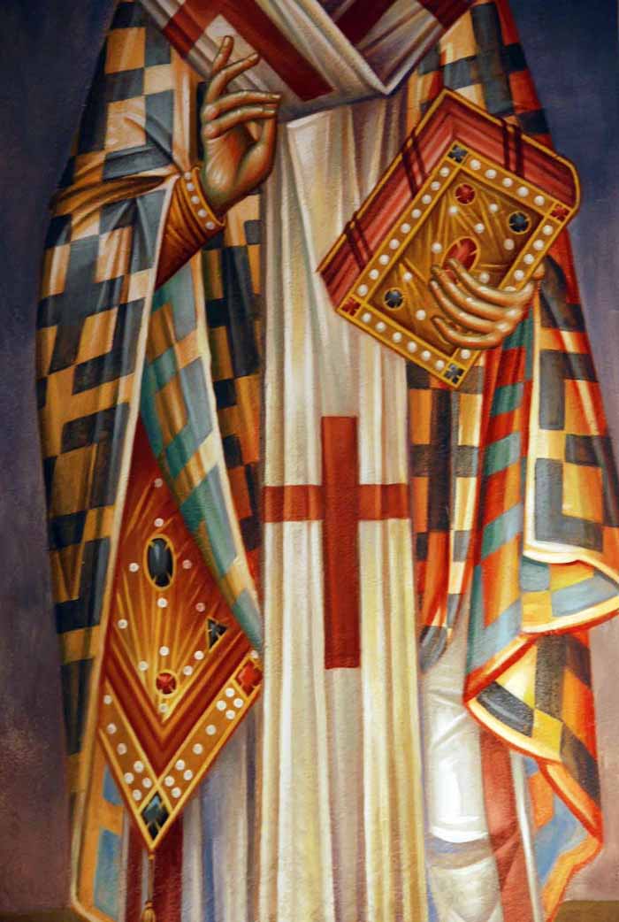 St Matthew, hand (detail), St Nektarios Church, Ano Voula, Stamatis Skliris, 2014