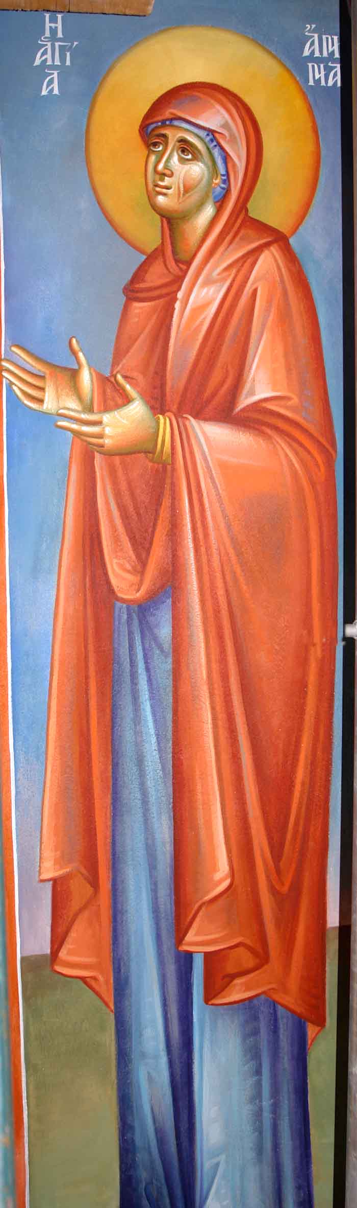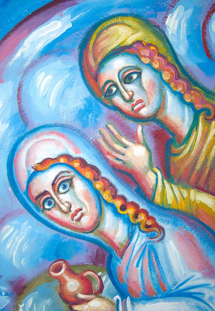 Lamentation upon the Grave (Ἐπιτάφιος θρήνος), detail, Wall Painting, St Nektarios Church, Voula 2016