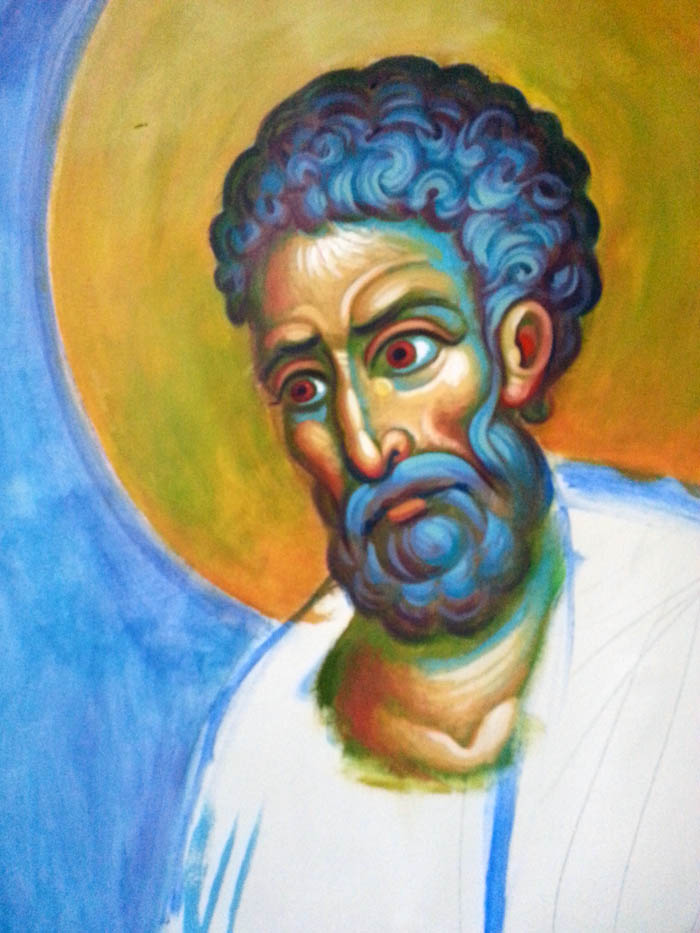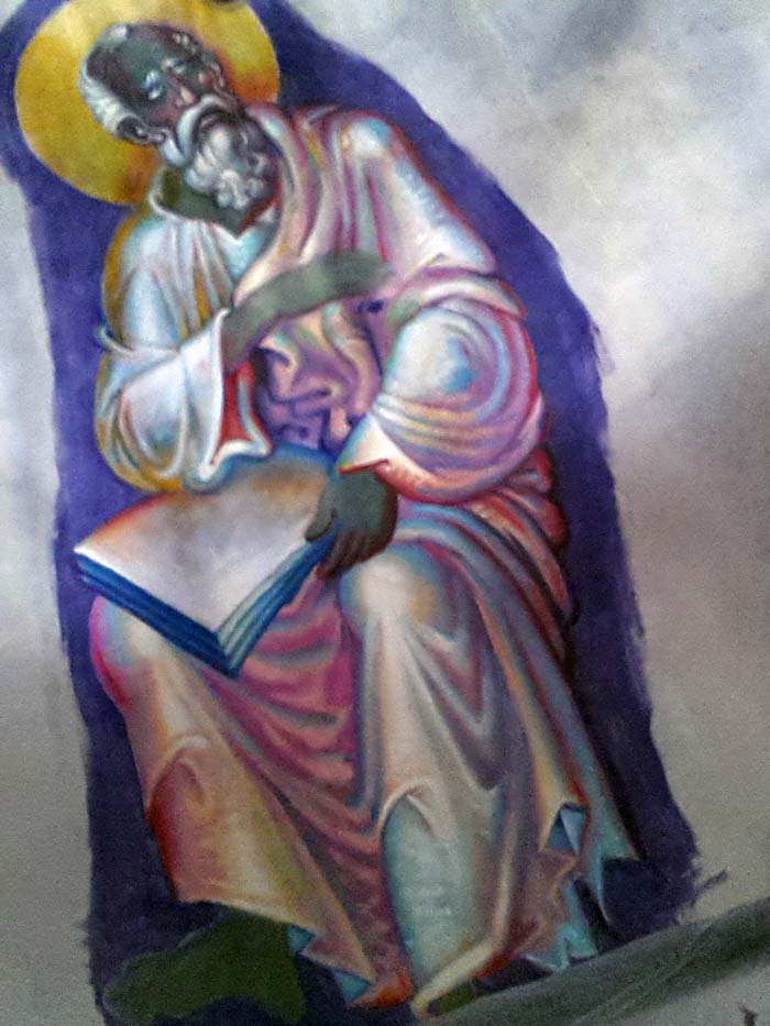 St Matthew, painting process, St Nektarios Church, Ano Voula, Stamatis Skliris, 2014