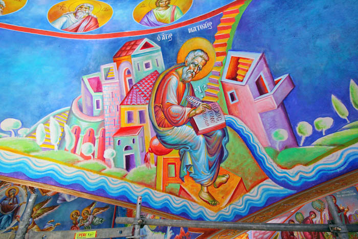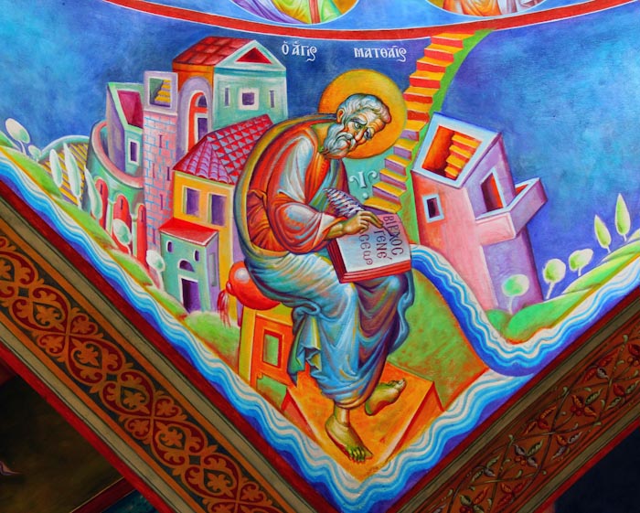 St Matthew, during the wall-painting of the dome in St Nektarios Church, Ano Voula, Stamatis Skliris, 2014