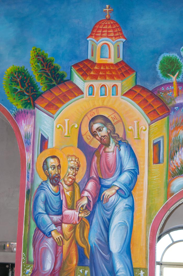 The Good Samaritan, detail, Wall Painting, St Nektarios Church, Voula 2016